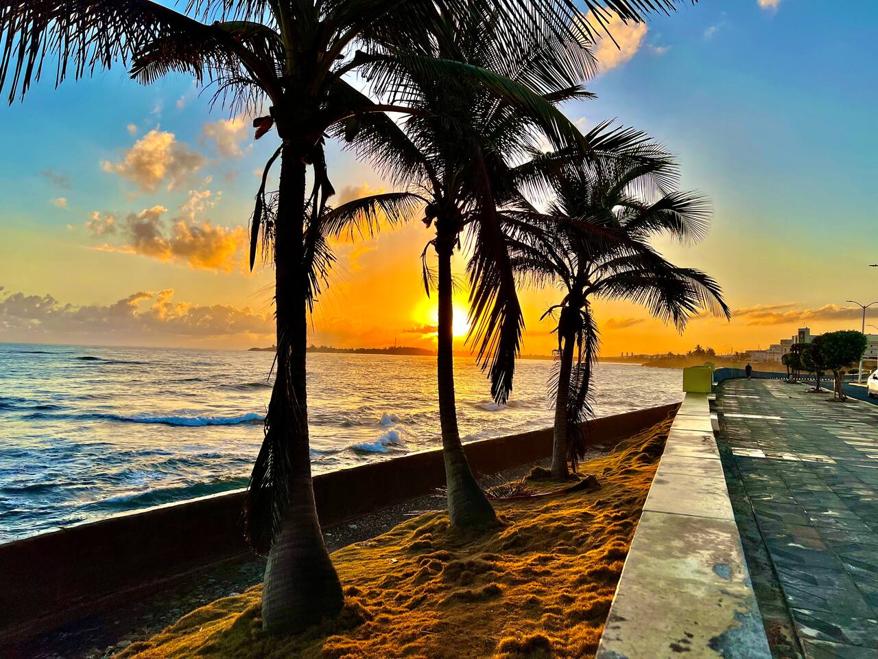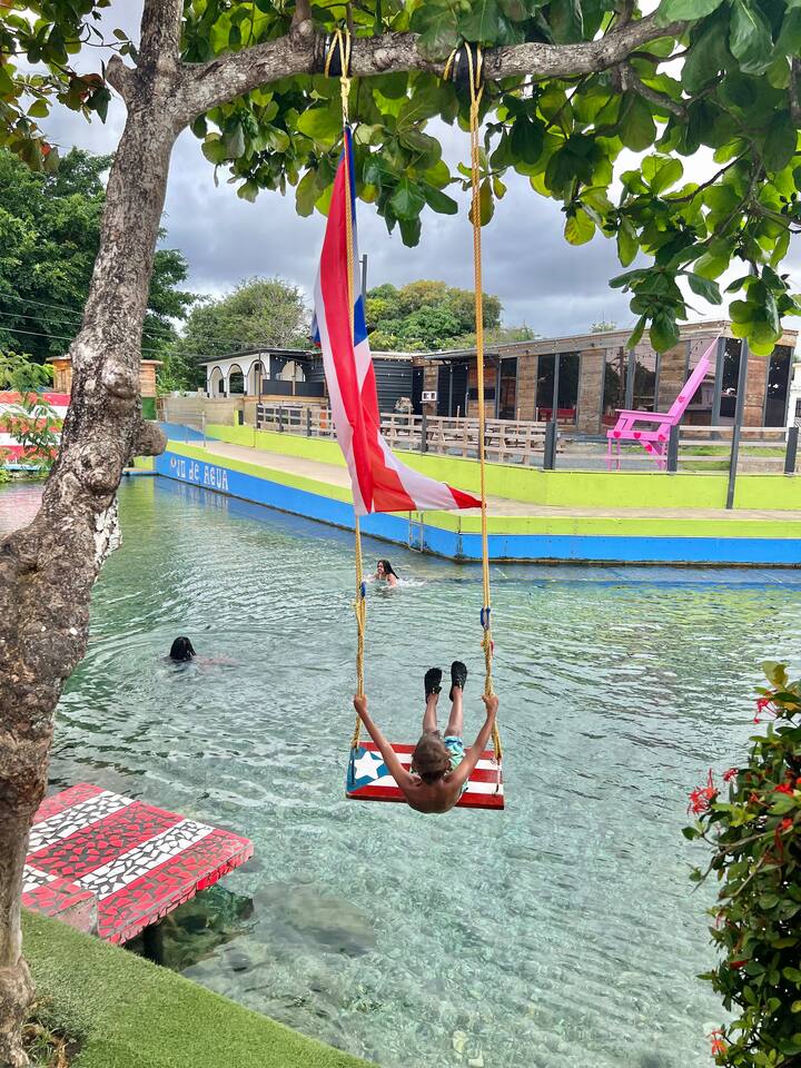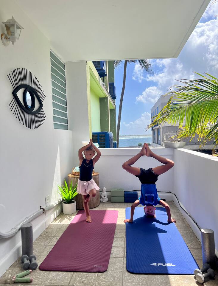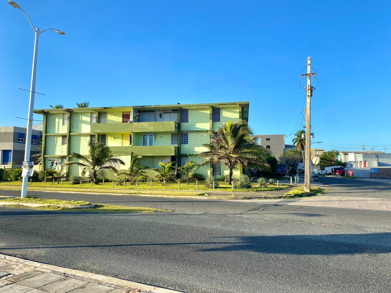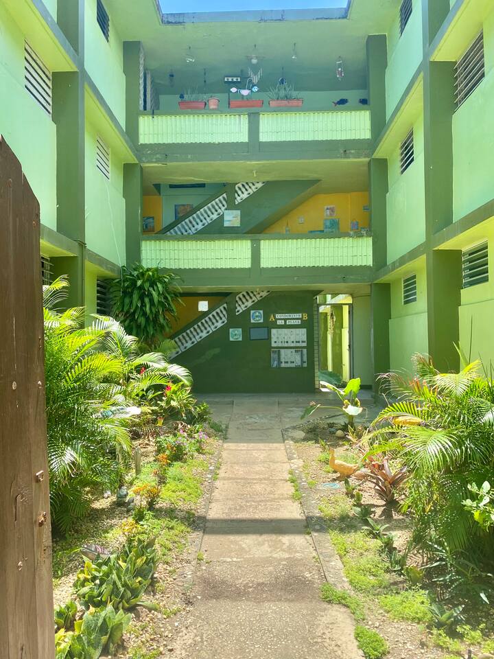 Our place is a safe, authentic Puerto Rican experience. This is not a gated resort, but in a local community. Our building has 12 condos. Nine of them are occupied and 3 need extensive work. We are close to many swimming beaches and walking distance to downtown restaurants, ice cream, and shopping . Across the street from awesome surfing! We are in a great location for Sunrise and Sunsets! Enjoy the ocean walk; approximately 2 miles of sidewalk that locals come to exercise!