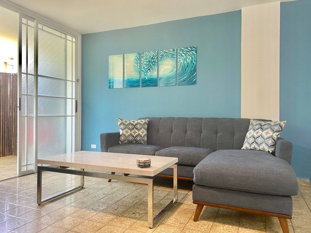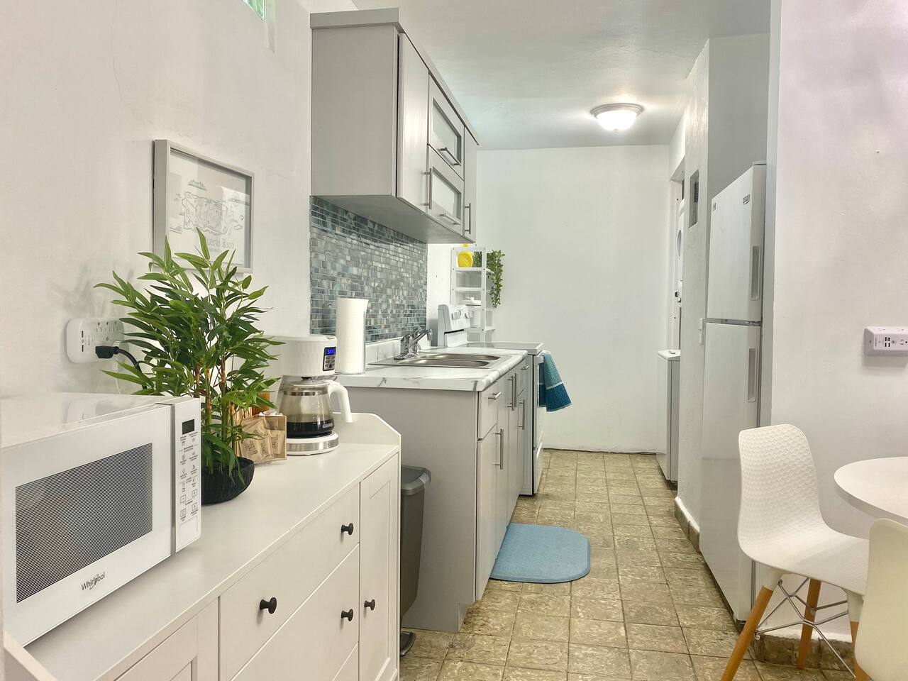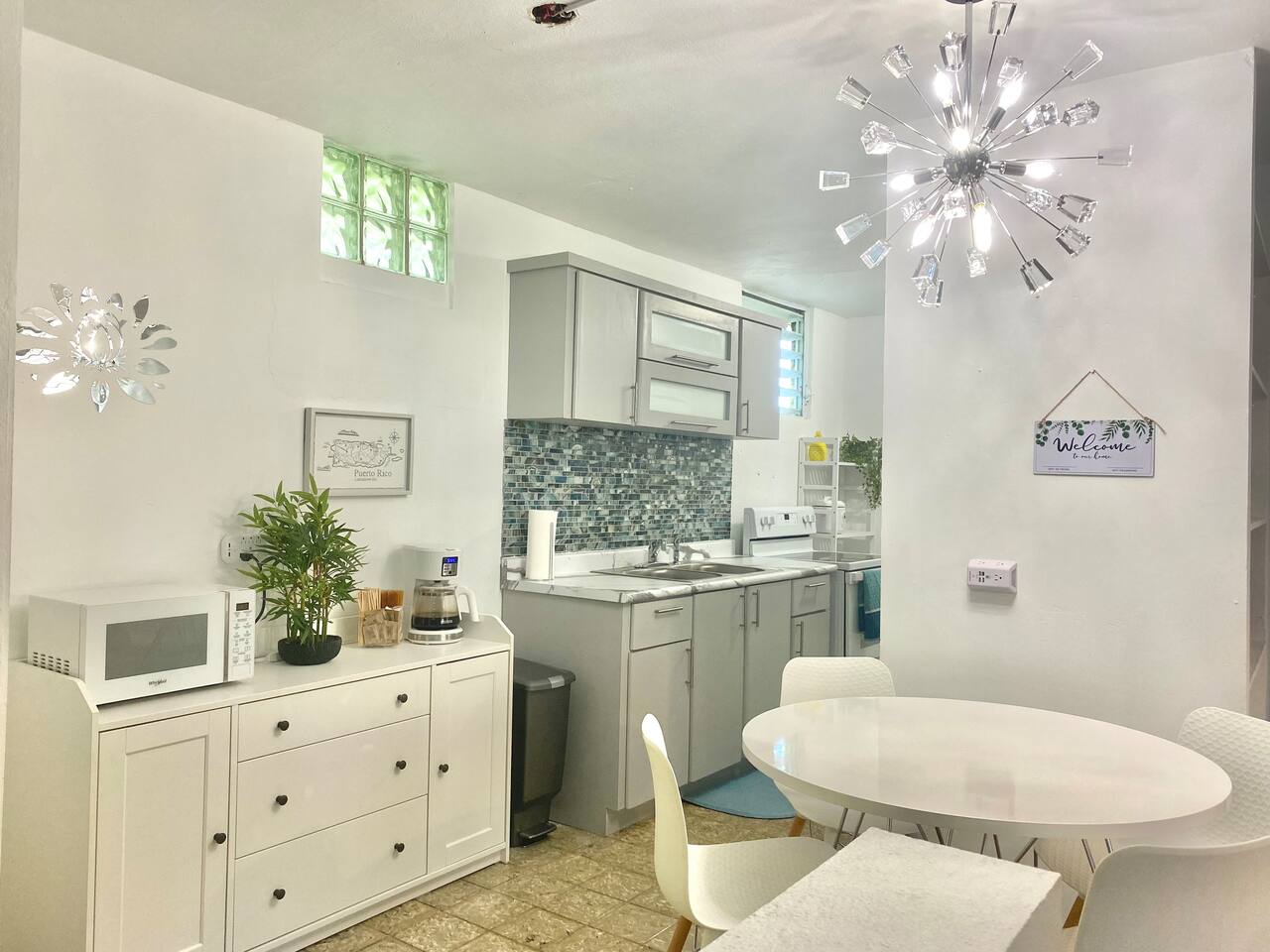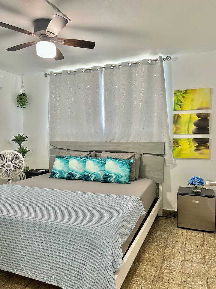 Our place is a safe, authentic Puerto Rican experience. This is not a gated resort, but in a local community. Our building has 12 condos. Nine of them are occupied and 3 need extensive work. We are close to many swimming beaches and walking distance to downtown restaurants, ice cream, and shopping . Across the street from awesome surfing! We are in a great location for Sunrise and Sunsets! Enjoy the ocean walk; approximately 2 miles of sidewalk that locals come to exercise!