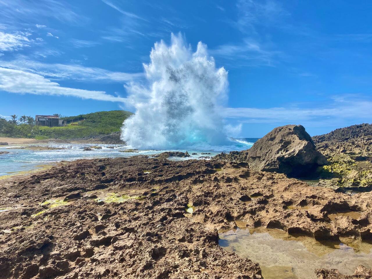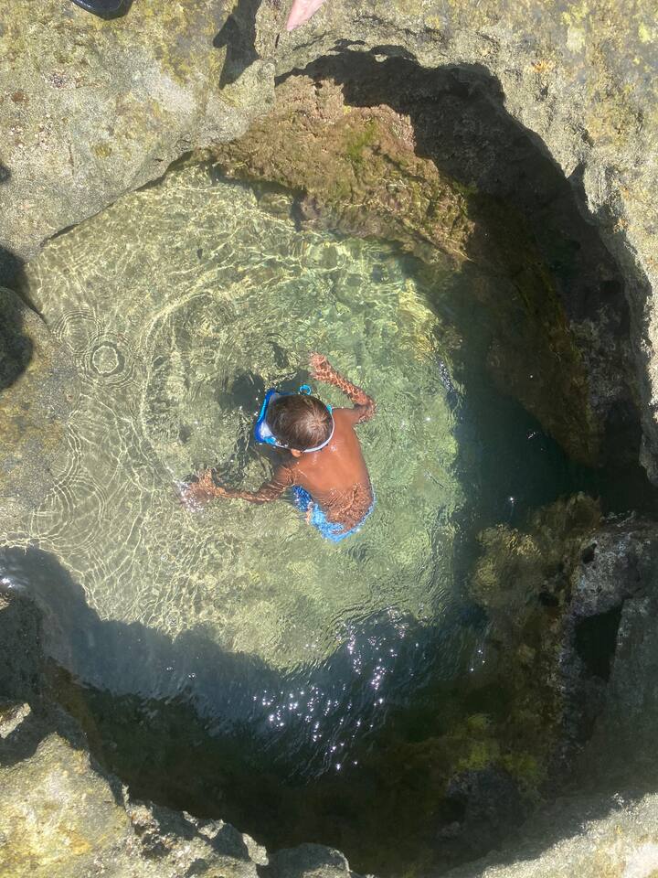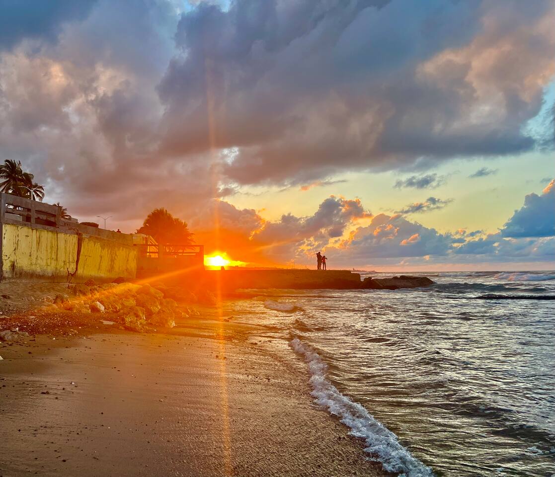 PLEASE READ the DESCRIPTION… **Coastal Escape: 🏝️Your Dream Getaway Awaits!** IMPORTANT NOTES: We do not have Air Conditioning. It was severely abused by guests in the past, and since we do not use it during our stays, we decided not to replace it. There are chickens and roosters in the neighborhood. They can be noisy. I do not have control over who has them, or the wild ones. The electric goes out from time to time. We do not have a generator. When we occupy the home, we go without until it comes back on. Be resourceful, enjoy your time, be resilient. Wake up to the sound of the ocean and enjoy a refreshing walk along the beach, with local surfers just steps from your door. Here’s what makes our location special: ✅**Stunning Views**: Experience breathtaking sunrises and sunsets from our prime oceanfront spot. ✅**Active Lifestyle**: Join us on the platform overlooking the ocean for morning workouts-yoga for me and jump rope for James. ✅**Surfing & Beaches**: Surf if you’re experienced, or take a short 5-10 minute drive to the nearest swimming beaches. ✅**Sea Glass Collecting**: Discover our daily activity of collecting sea glass, stones, and shells from the beach, beautifully displayed in the condo. ✅**Convenient Location**: The vibrant downtown area with local shops, markets, and restaurants is just a short walk away (most open Monday-Friday until 4-4:30 PM). ✅**Nearby Attractions**: • La Poza del Obispo beach is approximately 7 minutes away during the week (20-30 minutes on weekends). • Cueva del Indio, a must-see site, is just 15-20 minutes away on weekdays. • City parks with dinosaur and animal structures, a skate park, and walking/running tracks are accessible by walking or driving west along the ocean. **Family-Friendly Amenities**: ✔️ Pack 'n play ✔️ Toys and books for children ✔️ Travel high chair ✔️ Beach essentials provided: beach chairs, body boards, cooler, snorkeling gear, beach toys, and towels. **Comfort & Convenience**: ✔️ One free parking space included during your stay. ✔️ Stackable washer and dryer for your convenience. ✔️ Hot water, WiFi, and a Roku TV for entertainment. **Fully Equipped Kitchen**: - Kitchen essentials including seasonings, sugar, cream, and stir sticks for coffee (please note we do not provide coffee). - Additional items: shampoo, conditioner, body soap, hand soap, dish soap, two rolls of toilet paper, paper towels, linens (beds made for you), towels, face cloths, dinnerware, silverware, coffee maker, rice maker, microwave, stovetop, oven, fridge, freezer, blender and cleaning supplies under the sink. **Location Information**: - Arecibo is approximately 1 hour west from San Juan Airport. - Renting a vehicle is necessary as Uber service can be unreliable; ask us about car rentals if you need some suggestions. - Local taxi service is available upon request. Feel free to reach out if you have any questions before booking. We can’t wait to welcome you!