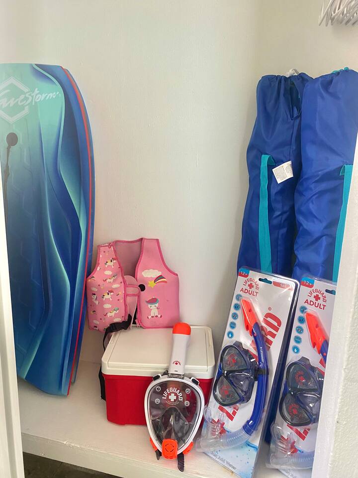 - Beach essentials Beach towels, umbrella, beach blanket, snorkeling gear